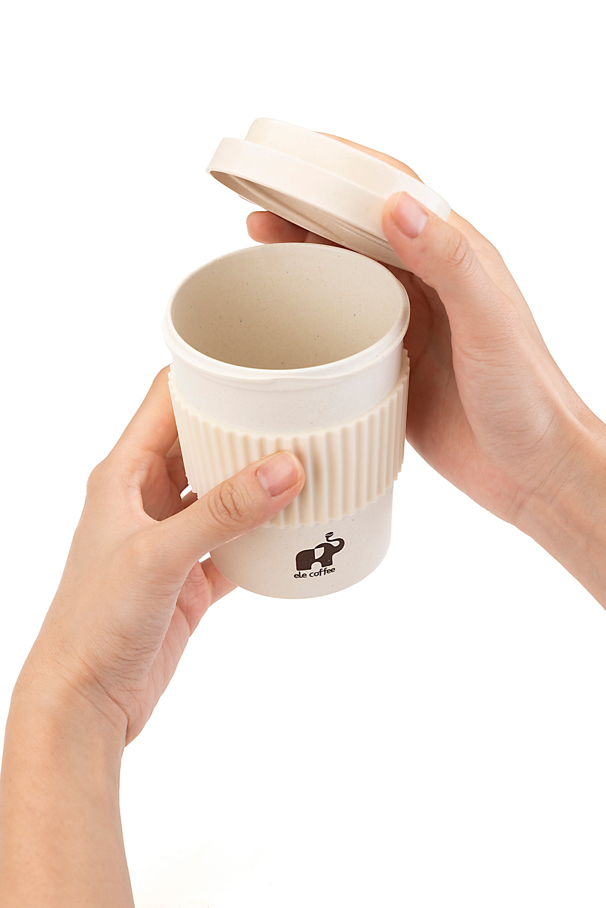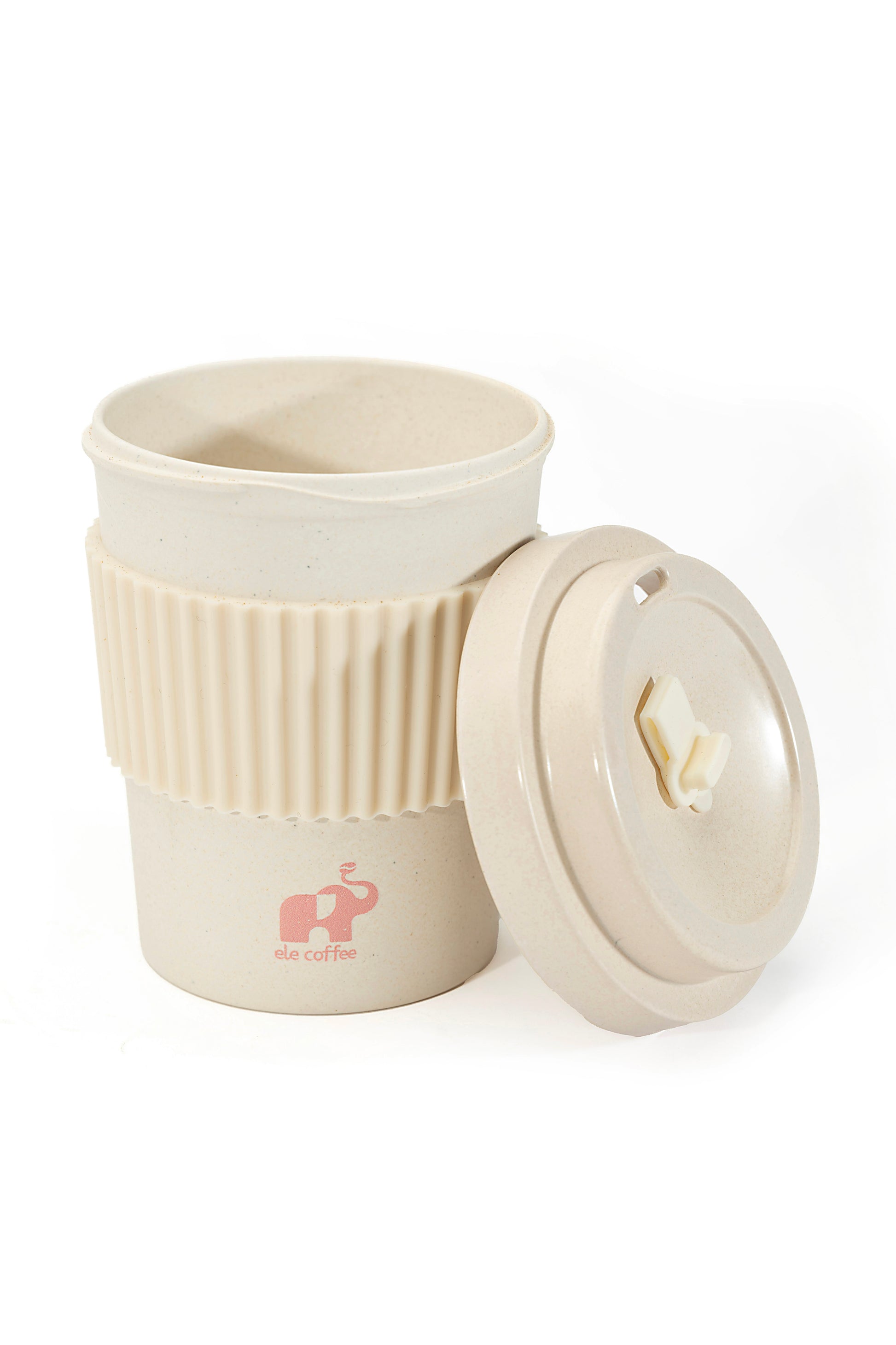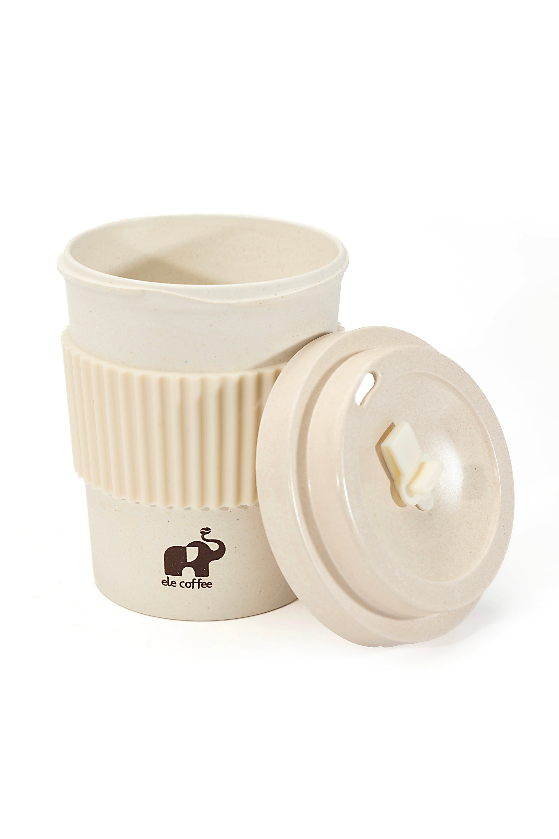 The Ele Brews 12oz Eco Cup is crafted from a unique blend of recycled coffee grounds and BPA-free bamboo fiber, offering a sustainable, reusable alternative to disposable cups.